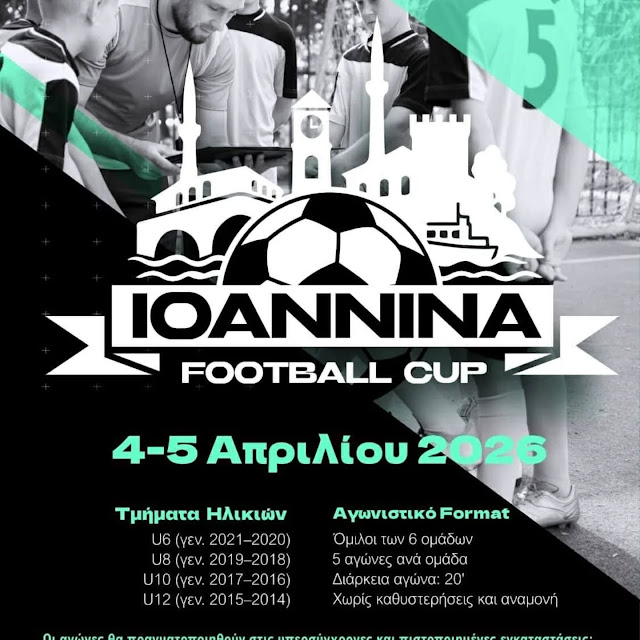 Με μεγάλη χαρά ανακοινώνουμε τη διοργάνωση εκδρομής στα Ιωάννινα στις 4-5 Απριλίου, με αφορμή τη συμμετοχή της ομάδας μας στο Ioannina Football Cup 2026!