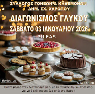 Δημοσιεύθηκε 31 Δεκεμβρίου 2025 από admin Διαγωνισμός γλυκού στο Χαρωπό Διαγωνισμός γλυκού στο Χαρωπό news, Sintiki News