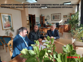 Ξεκίνησαν επιτέλους μετά από δύο χρόνια  οι εργασίες  για την κατασκευή του νέου υδραγωγείου Χαρωπού. Ένα έργο  το οποίο σχεδιάσθηκε, μελετήθηκε, χρηματοδοτήθηκε, δημοπρατήθηκε και συμβασιοποιήθηκε από την προηγούμενη δημοτική αρχή. Οριστικά και τυπικά υπογράφτηκε η σύμβαση στις 16 Νοεμβρίου 2023 στο Δημαρχιακό μέγαρο (εικόνα 2),  απόμενε  μόνο η υλοποίηση τους.