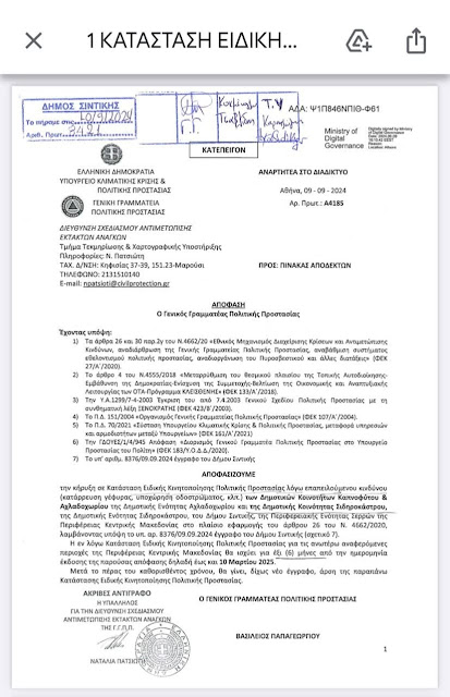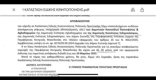 Μετα την πολυήμερη πυρκαγιά στον Όρβηλο το κράτος μας έδωσε την ευκαιρία και κήρυξε την περιοχή (και συγκεκριμένα την κοιλάδα του Σιδηροκάστρου) σε «Κατάσταση Ειδικής Κινητοποίησης Πολιτικής Προστασίας» για διάστημα 6 μηνών δίνοντας την ευκαιρία για ταχείες παρεμβάσεις και παράκαμψη της γραφειοκρατείας. ( φωτό έγγραφο)