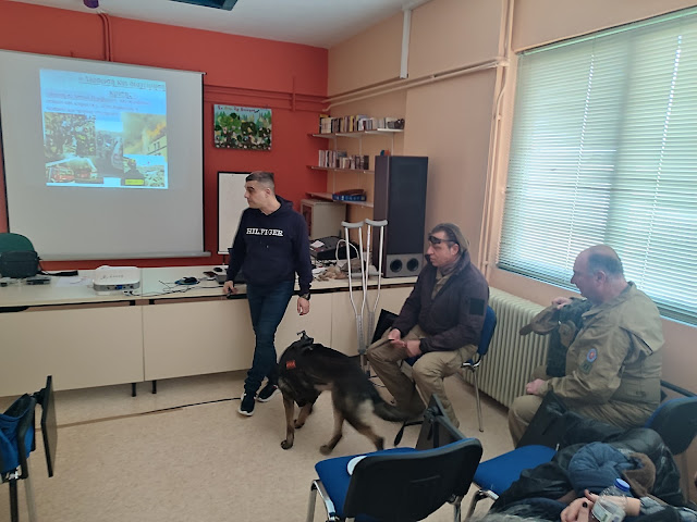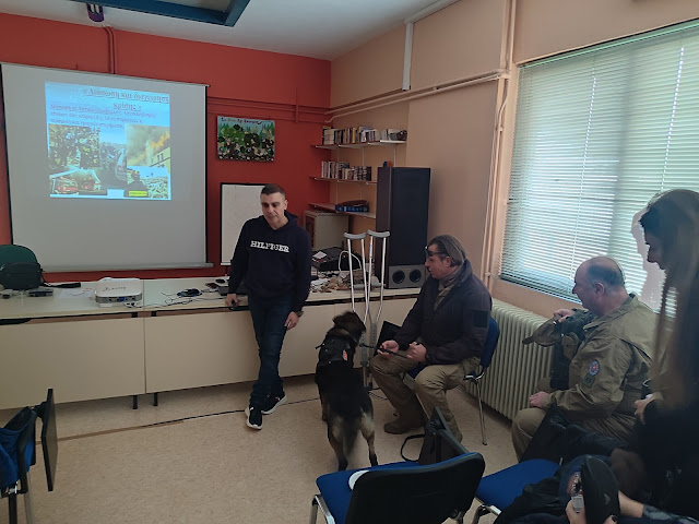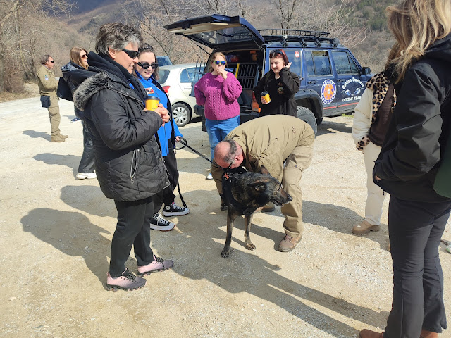 Αναπτύχθηκε ακόμη το θέμα «Πεζοπορία και Βιωματικά Εργαστήρια Πεδίου» στον χώρο του Αγίου Γεωργίου, πάνω από τα Άνω Πορόια, με τη συμμετοχή εκπαιδευμένων σκύλων της εθελοντικής ομάδας BearsRescueTeam, η οποία διαθέτει σημαντικό έργο στο ενεργητικό της. Με τη συμβολή του Νικήτα Βαρσαμά, Πυροσβέστη της 2ης ΕΜΑΚ, και των εθελοντών της ομάδας, οι εκπαιδευόμενοι της ειδικότητας «Συνοδοί Βουνού» είχαν την ευκαιρία να ενημερωθούν στο πεδίο για ζητήματα έρευνας και διάσωσης ανθρώπων. Οι συμμετέχοντες εκπαιδευτικοί ενημερώθηκαν επίσης από τον εκπαιδευτή του ΣΑΕΚ και ηθοποιό Γιώργο Καρύδα.