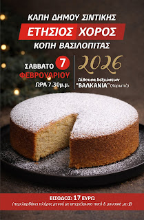 Το Σάββατο 7 Φεβρουαρίου 2026 σας περιμένουμε για μια όμορφη βραδιά με πλήρες μενού