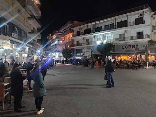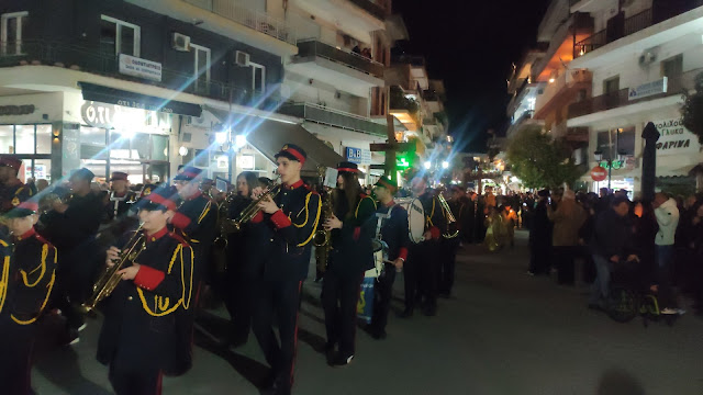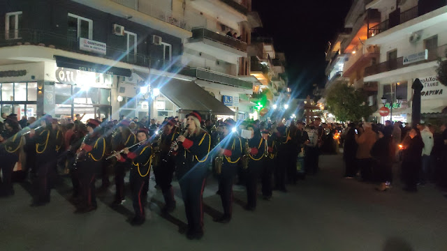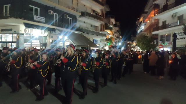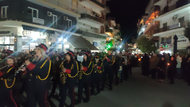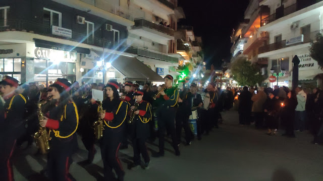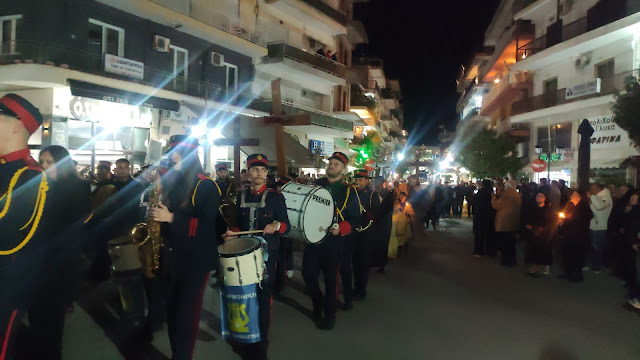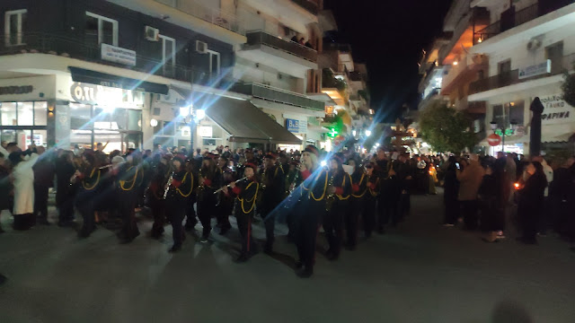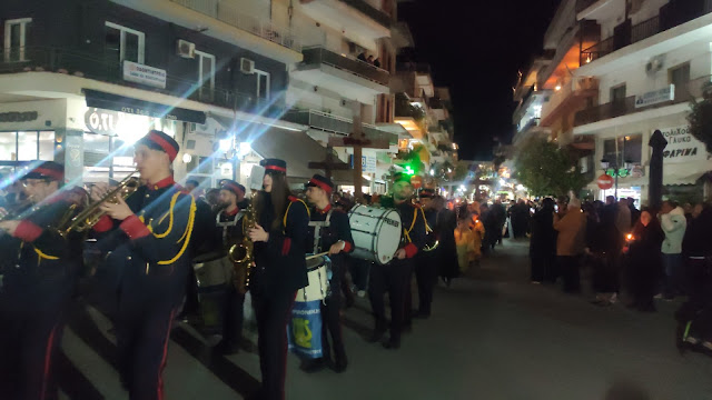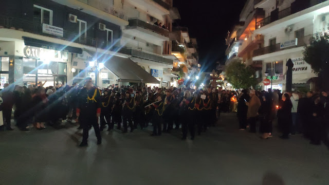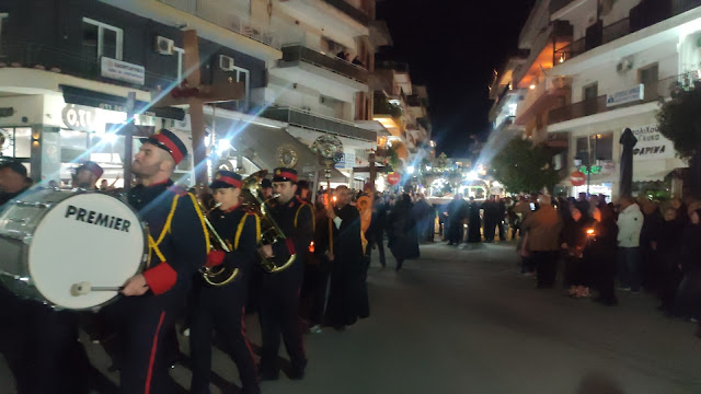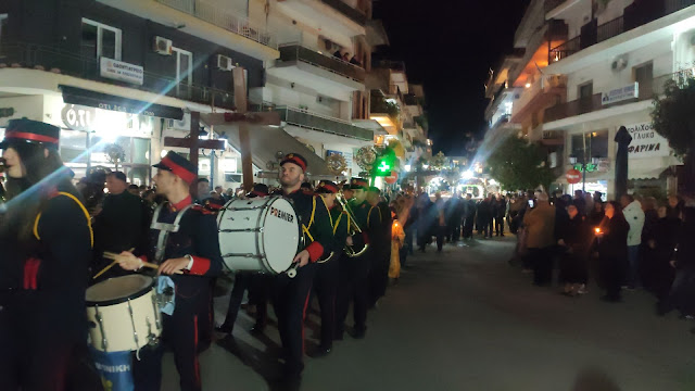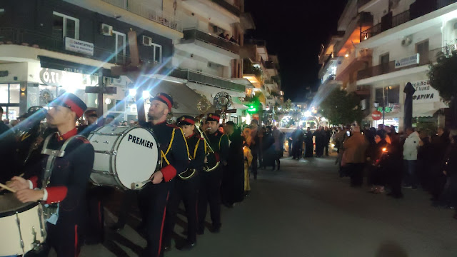 Στη συνέχεια ακολούθησε η λιτανεία, με τους Επιταφίους από τους ναούς του Αγίου Γεωργίου, της Ευαγγελίστριας, Αγίου Νεκταρίου και της Αγίας Παρασκευής να συναντώνται κοντά στο Δημαρχείο. Με τη συμμετοχή εκατοντάδων πιστών, η πομπή κατέληξε στην κεντρική πλατεία, όπου ο Μητροπολίτης απηύθυνε λόγο προς το πλήθος.