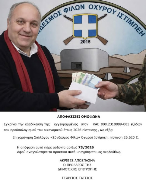 Νέα χρηματοδότηση λοιπόν από τον Δήμο ΣΙΝΤΙΚΗΣ στον πολυπράγμων σύλλογο «Φίλων Οχυρών Ινστιμπεη» που δημιούργησε πριν μια δεκαετία ο Τάτσιος.