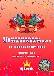 Δημοσιεύθηκε 13 Φεβρουαρίου 2026 από admin Την Κυριακή 22 Φεβρουαρίου το 27ο καρναβάλι Σιδηροκάστρου Screenshot Την Κυριακή 22 Φεβρουαρίου το 27ο καρναβάλι Σιδηροκάστρου Screenshot news