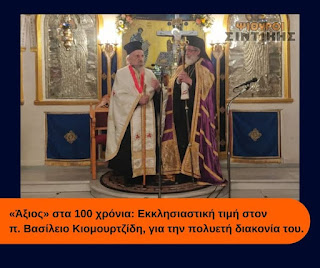 Ψίθυροι της Σιντικής / «Άξιος» στα 100 χρόνια: Εκκλησιαστική τιμή στον π. Βασίλειο Κιομουρτζίδη, για την πολυετή διακονία του (φωτο – βιντεο)