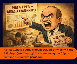 • Το έργο δεν είναι μοναδικό, ούτε πρωτοφανές, αλλά καθυστερημένη συμμόρφωση σε ευρωπαϊκή υποχρέωση Ιδιαίτερη εντύπωση προκάλεσε και η αόριστη αναφορά του Δημάρχου σε «πολλά δεκάδες εκατομμύρια ευρώ».