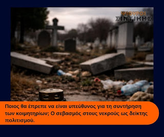 ➡️Η κατάσταση ενός νεκροταφείου αντικατοπτρίζει την κατάσταση ενός δήμου. Μια υγιής στάση απέναντι στους χώρους μνήμης, σεβασμού και αξιοπρεπούς φροντίδας τους, μιλάει για την ψυχική ανάπτυξη μιας κοινωνίας, όχι μόνο για την ευημερία της.